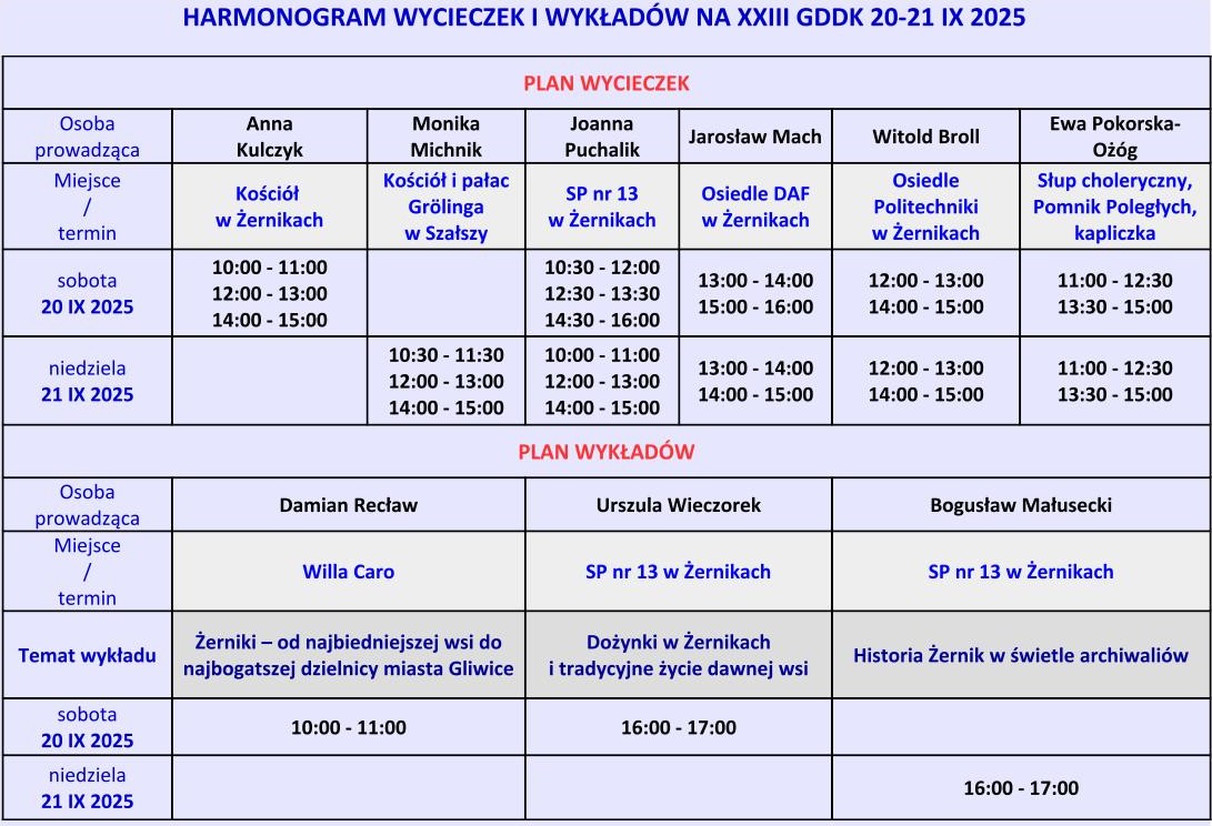 harmonogram wycieczek i wykładów